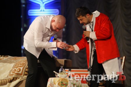 - Молодой мэр… Недавно... Надолго? – зал засмеялся. - Я ж говорил, мы ехали в Кременчуг, - продолжил комик тему с убитыми дорогами. - Дороги - это ж область. Вы не причем. Нам же ж надо уехать. Я мэра не трогаю.