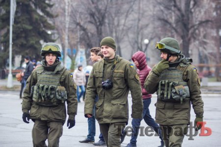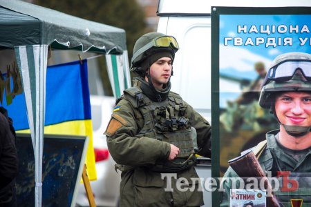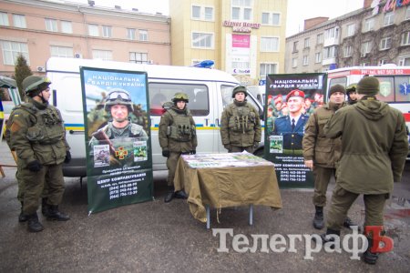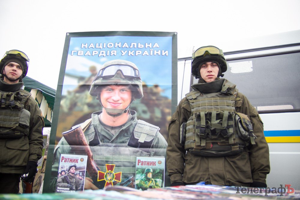 Скромно та тихо на площі стоять кременчуцькі нацгвардійці. Бійців військової частини 3059 регулярно відряджають до зони АТО на захист України.