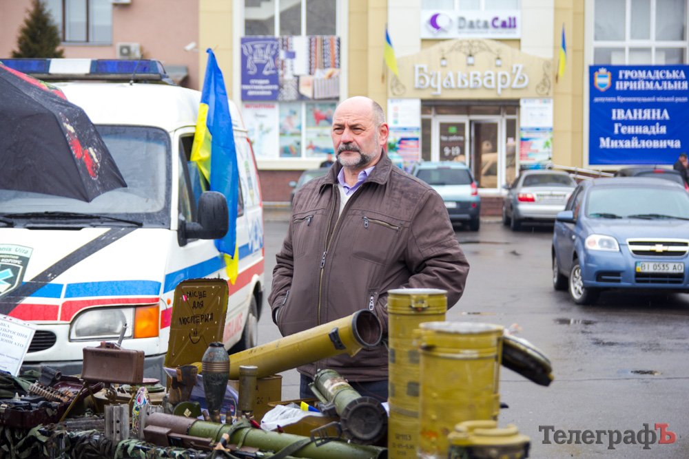 14 березня у Кременчуці на площі Незалежності з самого ранку спостерігалась метушня — встановлювали сцену, палатки, розкладали привезенні із зони АТО небезпечні цікавинки, підготовлювали польову кухню. Це — останні штрихи перед святкуванням Дня Добровольця, що в Україні відзначається вперше.