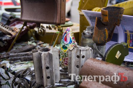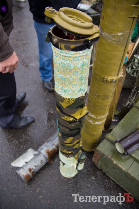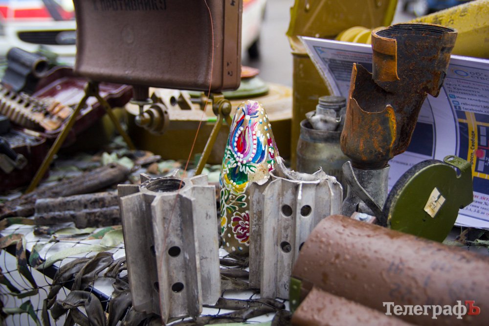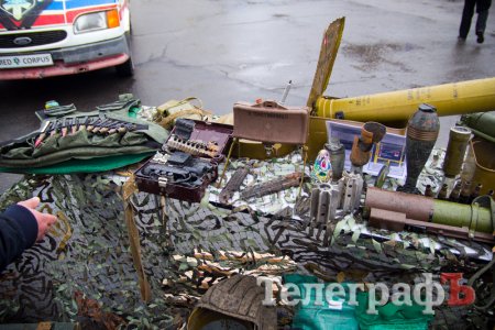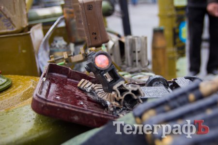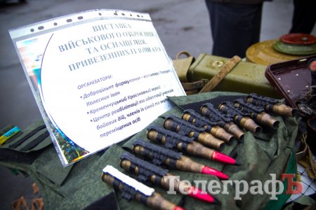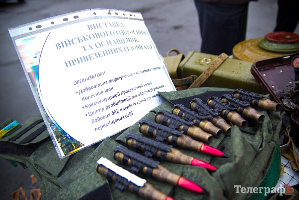 Велику зацікавленість школярів, особливо — хлопчиків, викликала виставка військового озброєння та оснащення, привезених із зони АТО. Трофеї для виставки підготували волонтер “Телеграфу” Іван Колесник, Кременчуцький краєзнавчий музей та центр реабілітації та адаптації військових. Поряд стояв волонтерський мікроавтобус Івана. Він же “бусік кохання” та нічний кошмар сєпарів.