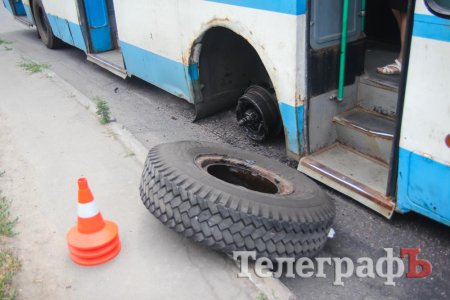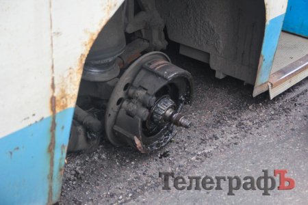 В Кременчуге у троллейбуса на ходу отвалилось правое переднее колесо. Как сообщают очевидцы, это старый троллейбус, который ехал по маршруту №5. С левым передним колесом также проблемы. Инцидент произошёл на спуске с Пивзаводовского моста в сторону Молодёжного.