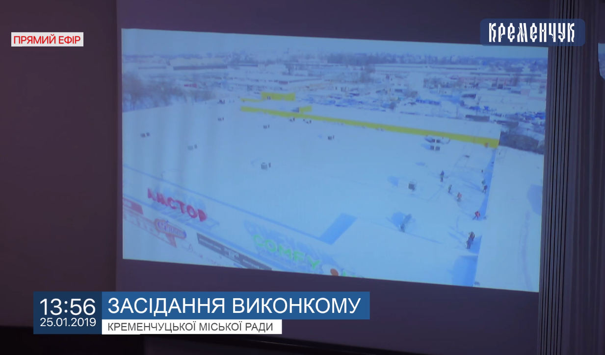 На засіданні показали фото, на якому зображено дах «Амстору». Його зробили за допомогою квадрокоптера.