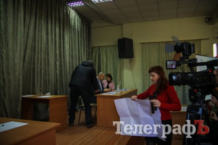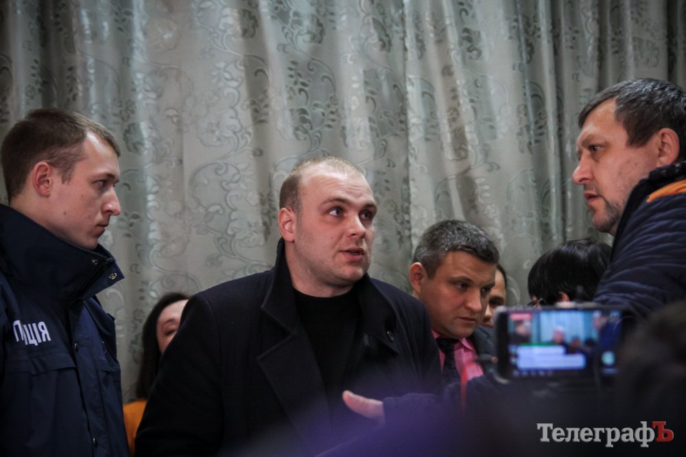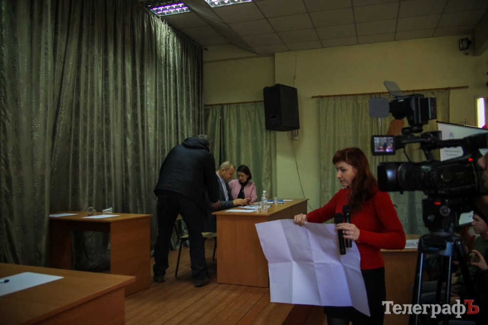 Слухання мали початися о 12.00. За кілька хвилин до початку на сцену вийшов голова ГО «АТО-Майдан-Кременчук» Леонід Харченко. Він почав розсовувати по сцені столи, за якими мала сидіти президія. Леонід Харченко таким чином хотів завадити відкриттю слухань, щоб їх не визнали такими, що відбулися.