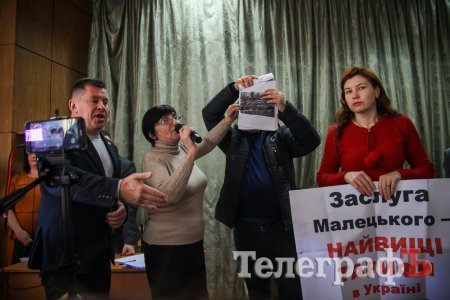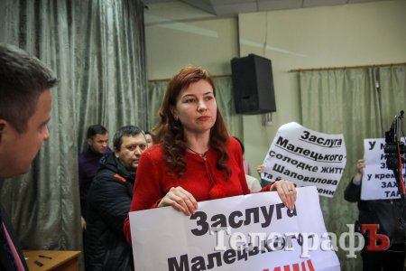 Після цього почалася штовханина: на сцену з плакатами вийшли депутатка Кременчуцької міськради Оксана Піддубна та кілька кременчужан, взяла мікрофон депутатка міськради Валентина Гордєєва і почала розказувати про незадовільний стан тепломереж у місті.