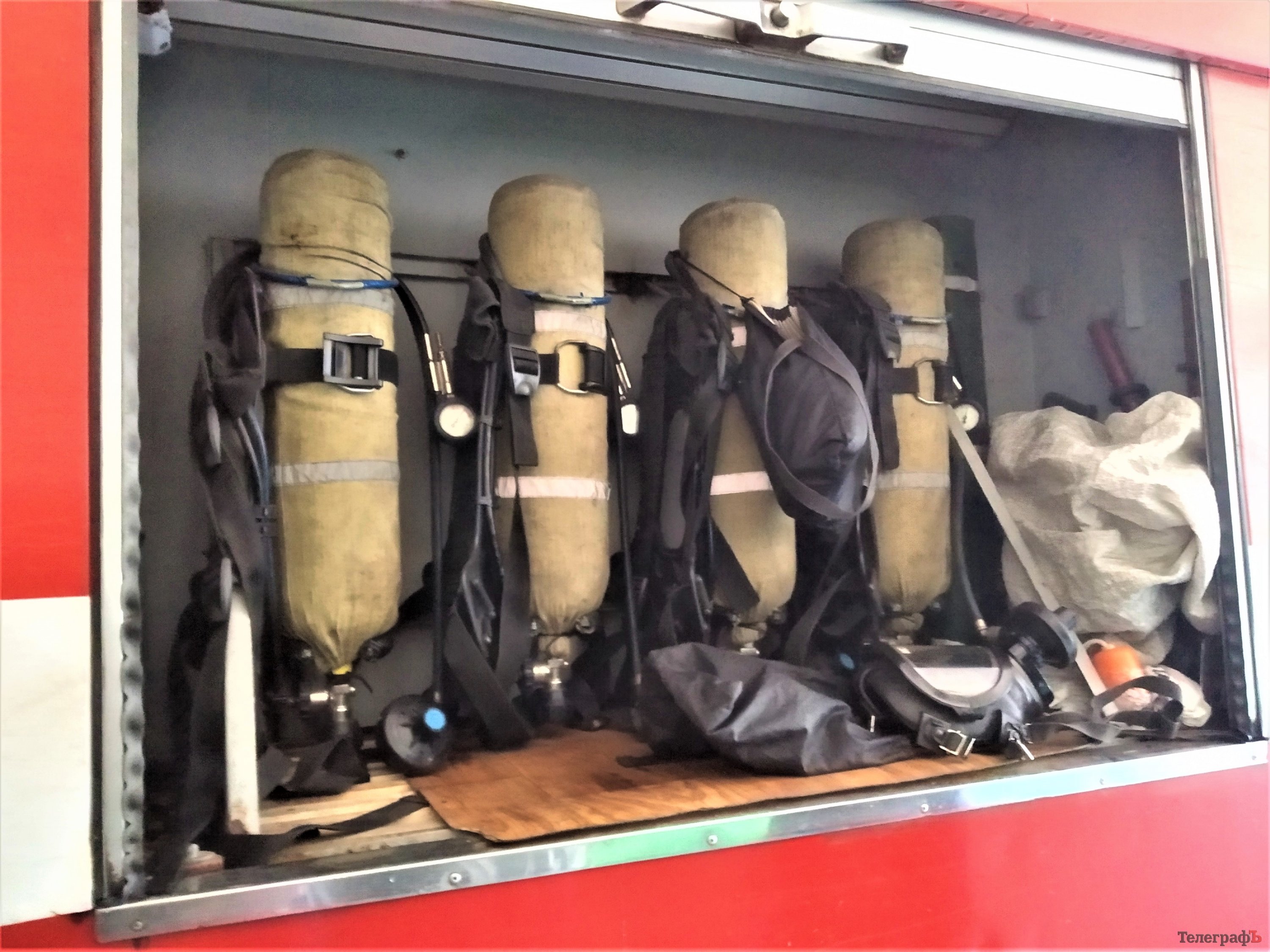 Апарати захисту дихальних шляхів - це металеві балони, куди закачане повітря під тиском у 300 атмосфер (для порівняння, тиск всередині колеса пожежної машини - 5 атмосфер). Скільки повітря вистачить - залежить від фізіологічних особливостей організму. У середньому балона вистачає на пів години. Коли закінчується повітря - спрацьовує сигнал