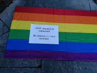 9.38 З'явилися молодики, які виступають за "традиційні цінності". Кажуть, що принесли арт-обєкт.