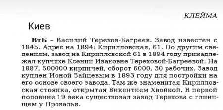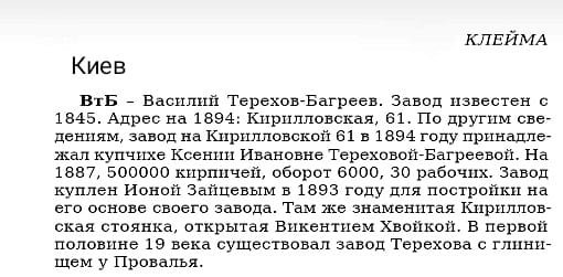Цегла заводу Василя Терехова-Багреєва, який працював у Кременчуці з 1845 року. Станом на 1887 рік в рік тут виготовляли 500 000 цеглин, працювало 30 робітників.