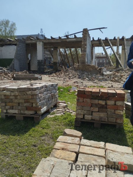 Разом із міським головою та віцемером Русланом Проценком журналісти оглянули територію. Цілі фрагменти цегли складали один до одного. Одну з цеглин Малецький взяв для подарунка віцемеру Дмитру Кравченку. Цеглину з тавром ВтБ передадуть до Кременчуцького краєзнавчого музею.