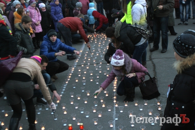 Из горящих свечей кременчужане выложили на асфальте символический крест