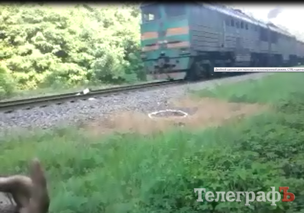 Милиция задержала мальчика и девочку, которые снимали на телефоны, как тепловоз раздавливает бетонный пикетный столбик