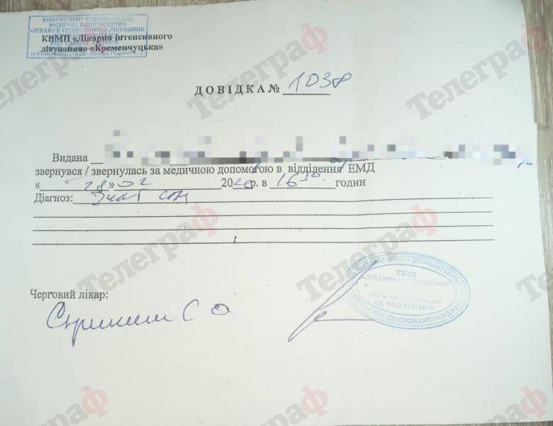 Чоловік також надав редакції лікарський висновок, у якому зазначено діагноз — закрита черепно-мозкова травма та струс мозку.
