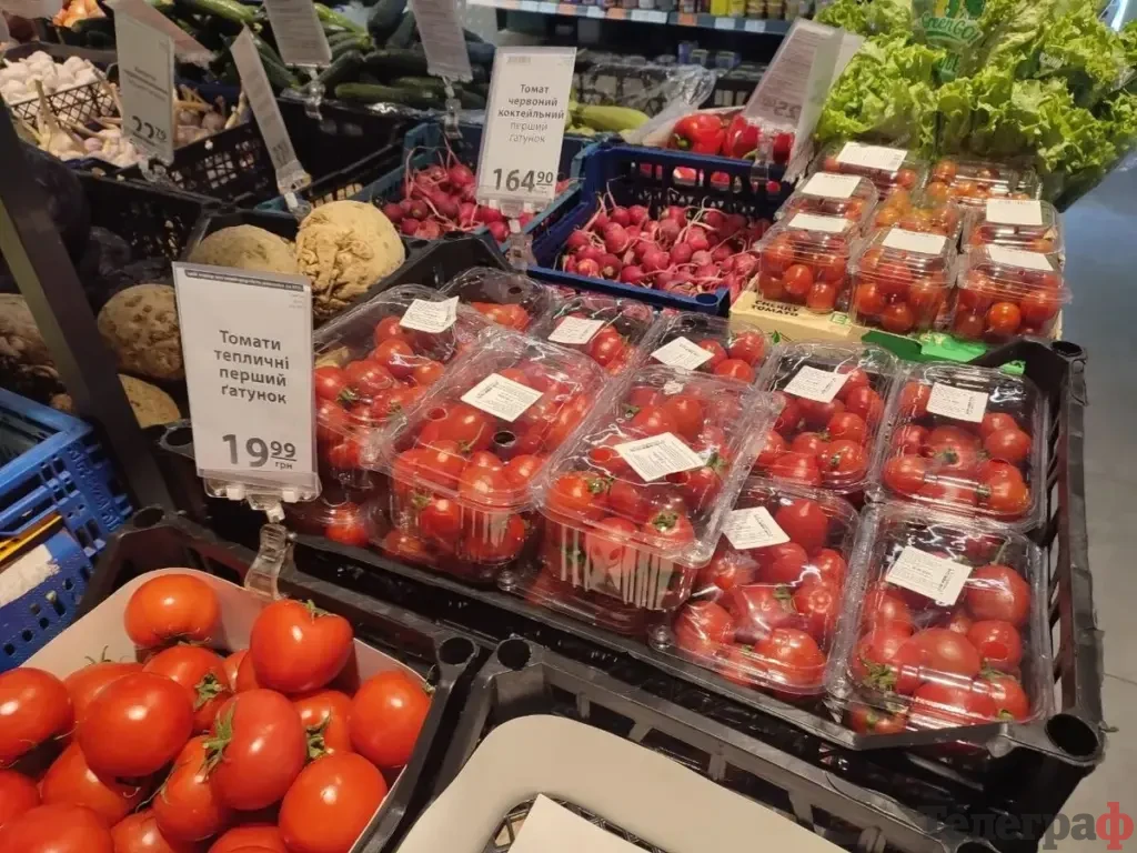 - помідори (500 г) — від 100 грн (ціна від 199,99 грн/кг);