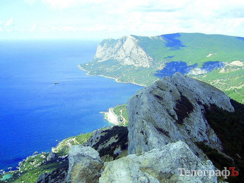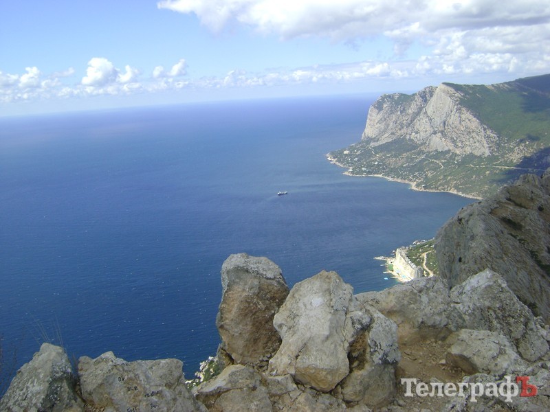 С вершины Ильяс-Кая просматриваются и соседние горы, и местное озеро, и даже правительственная дача. Люди говорят, что попасть туда можно только по спецпропускам, даже для некоторых шишек вход закрыт. А еще сетуют, что из-за олигархов и так труднодоступные берега стали совсем не доступными – все перекрыто. Кстати, отсюда открывается вид и на самую южную точку Крыма – мыс Сарыч.