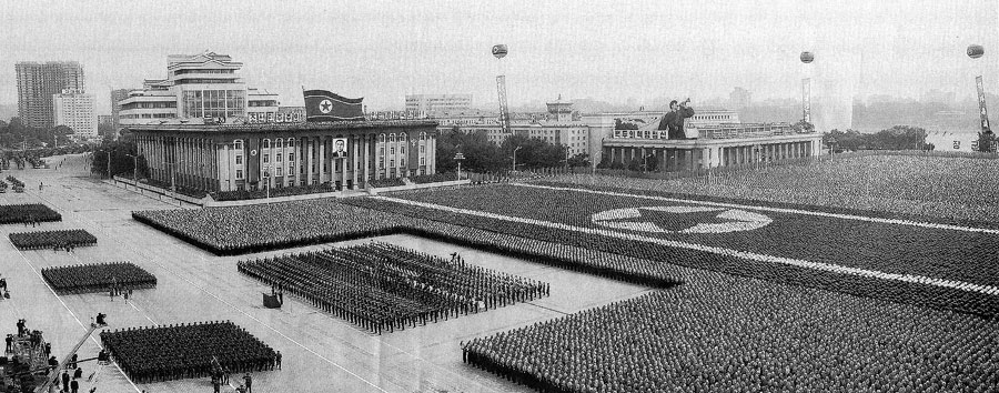 Ради интереса посчитайте, сколько людей-пикселей стоит на главной площади Пхеньяна во время военного парада, изображая картины и сцены для Великого Вождя и полководца товарища Ким Чен Ира - у меня не получилось...