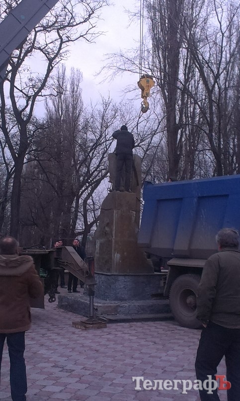 В Кременчуге 24 февраля около 17.00 был демонтирован памятник Ленину, который стоял возле проходной на Крюковский вагоностроительный завод на ул.Приходько.