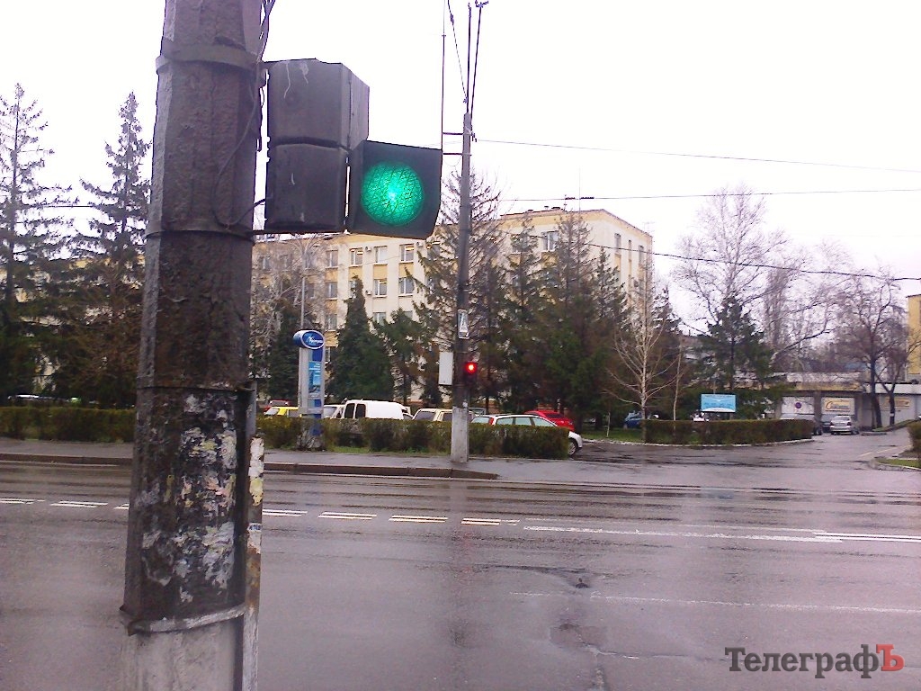 Так с утра 7 апреля встречал пешеходов светофор на ул. 60-летия Октября в районе остановки "Кредмаш". Видимо, вчерашний ветер ему сильно надул в "голову". Какую-то секунду-две светофоры показывают разный сигнал.