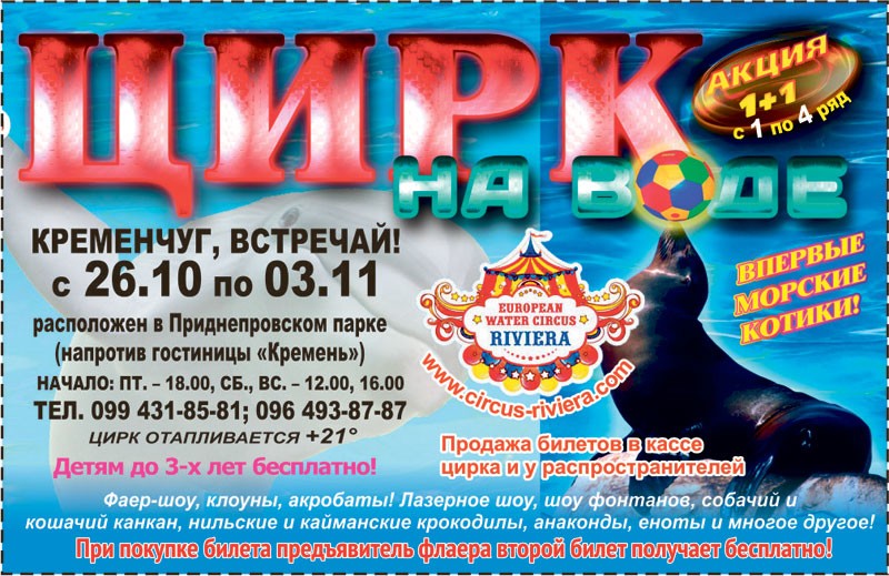 "Кременчугский ТелеграфЪ" разыгрывает 20 билетов на цирковое представление «Цирк на воде»