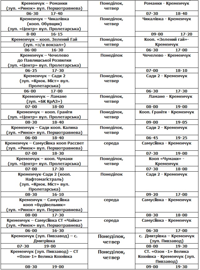 Автобусы будут ходить три дня в неделю - по понедельникам, средам и четвергам. Для малообеспеченных горожан проезд на автобусе бесплатный, для всех остальных кременчужан - по действующим тарифам.