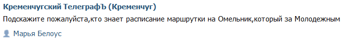 Напомним, в нашей группе Вконтакте пользователи выложили расписание автобуса Кременчуг-Потоки.