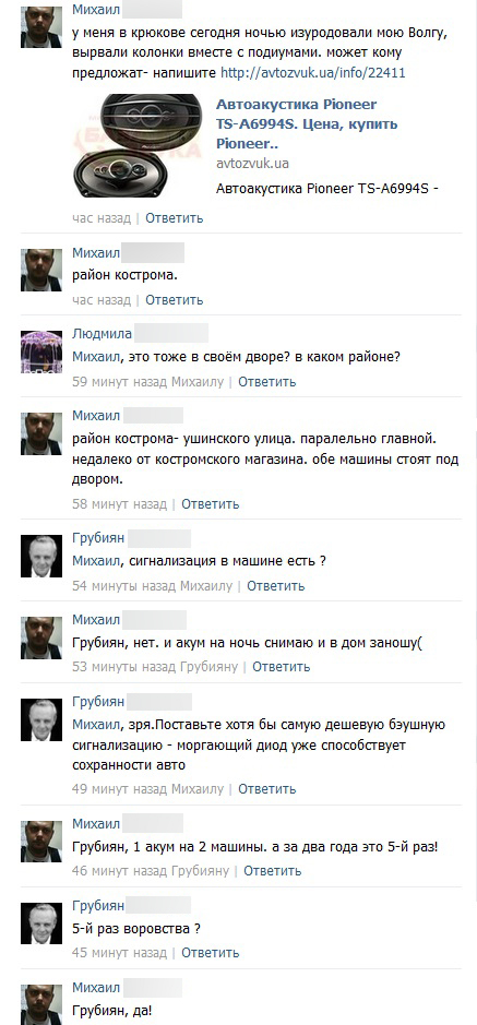 Также житель Крюкова сообщил, что в милицию не обращался. Только попросил кременчужан, если увидят колонки, такие как у него украли, или кто-то предложит купить - сообщить ему.