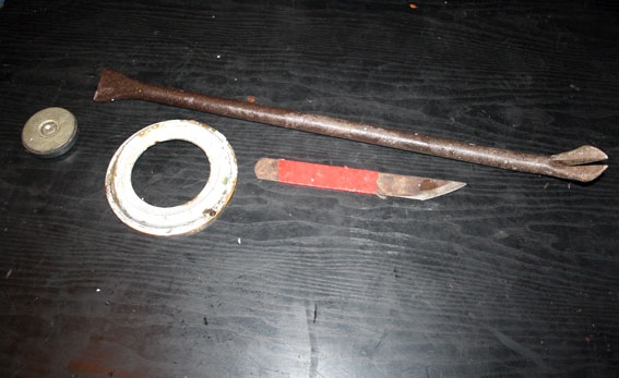 У мужчины изъяли инструменты для быстрого поднятия надгробных плит, а также магнит, которым он проверял происхождение металла.