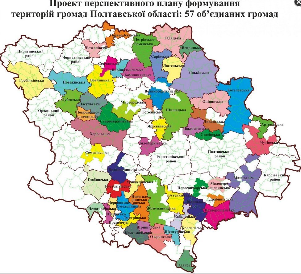 57 объединенных территориальных общин будет в Полтавской области на первом этапе административно-территориальной реформы. Остальные (во многих районах) объединяться не захотели. Перспективный план объединения территориальных общин был принят на заседании сессии Полтавского областного совета 3 июня, однако решение (с учетом поправок) появилось в доступе только сегодня.