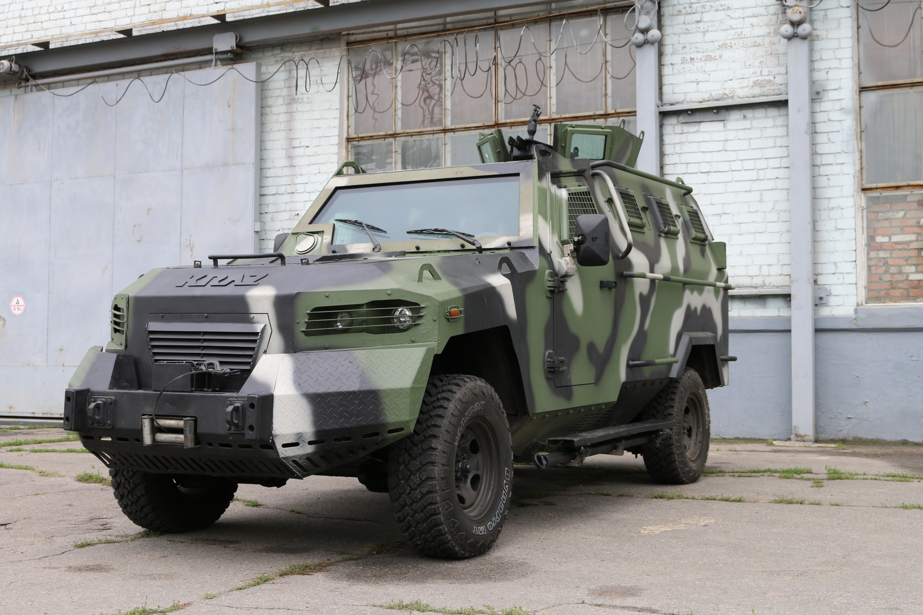 На предприятии КрАЗ восстановили попавший под обстрел в зоне боевых действий на востоке бронированный автомобиль КрАЗ-Кугуар.