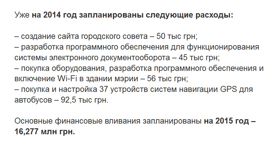 Из Программы информатизации Кременчуга на 2014-2018 годы (архив "Телеграфа")
