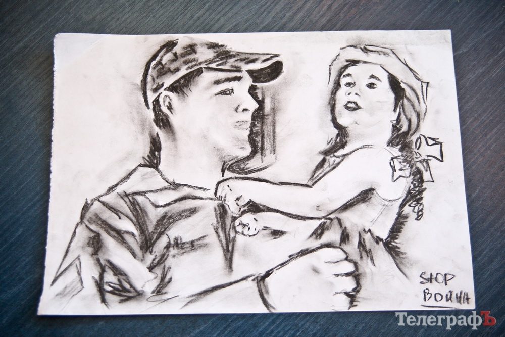 Серед робіт є картини командира роти 42 батальйону Дмитра Кравченка. Частину його робіт продали на аукціоні. Малюнок вугіллям продали за 1500 грн.