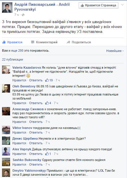 – Я ехала в поезде «Запорожье – Киев», – рассказывает кременчужанка Анна, – Wi-Fi действительно был. Но он не работал:(