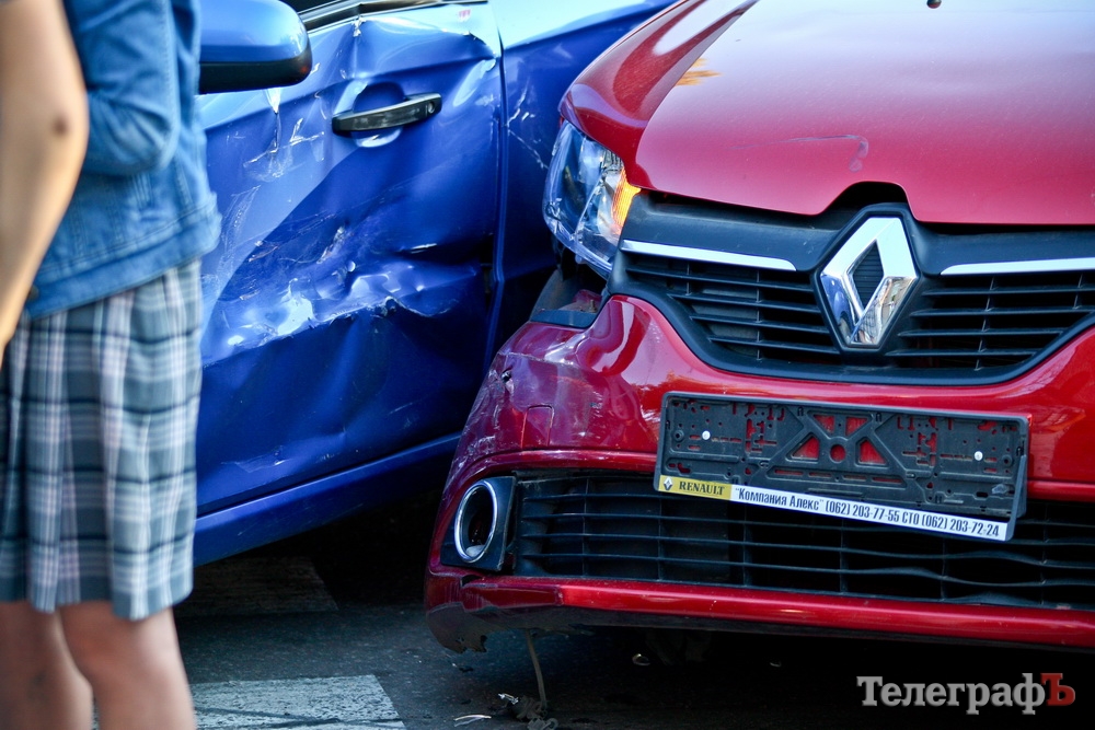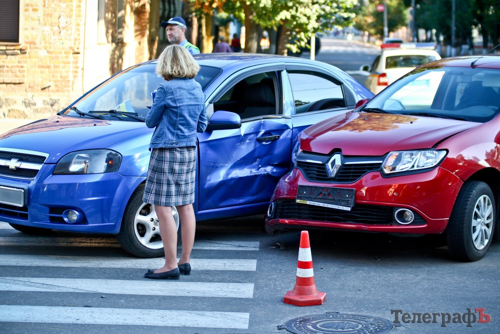 Две легковые машины, Chevrolet и Renault, столкнулись сегодня в Кременчуге на перекрёстке улиц Бутырина и Шевченко около 17 часов.