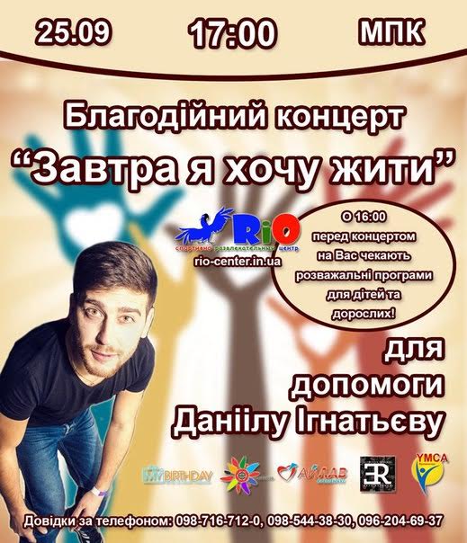 ЧТО: Благотворительный концерт. Сбор денег на лечение кременчужанина Даниила Игнатьева. У молодого парня отказали почки – последствия после заболевания ангиной в 15 лет.