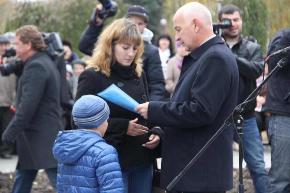 28 октября в Кременчуге, в День освобождения Украины от фашистских захватчиков, возле памятника "Воину-Освободителю" первый секретарь горсовета Василий Ивко вручил ордера на квартиры семьям погибших в АТО бойцов Дмитрия Андрусенко и Сергея Зуенко.