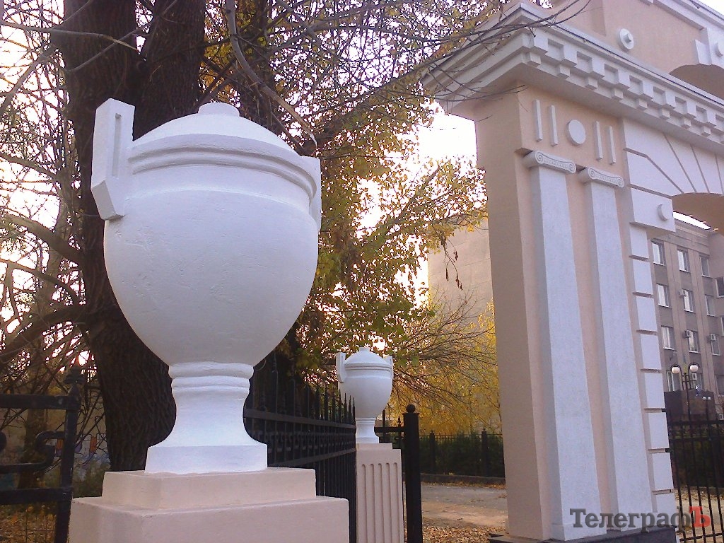 Центральный вход в Городской сад Кременчуга обставили вазами и покрасили.