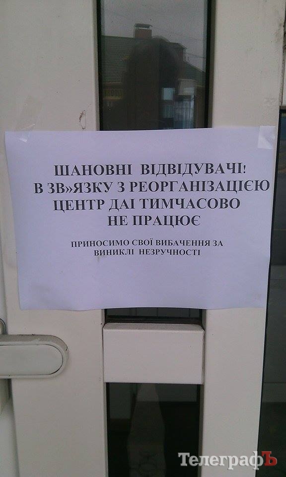 На дверях Центра висит обращение с просьбой извинить за временные неудобства.