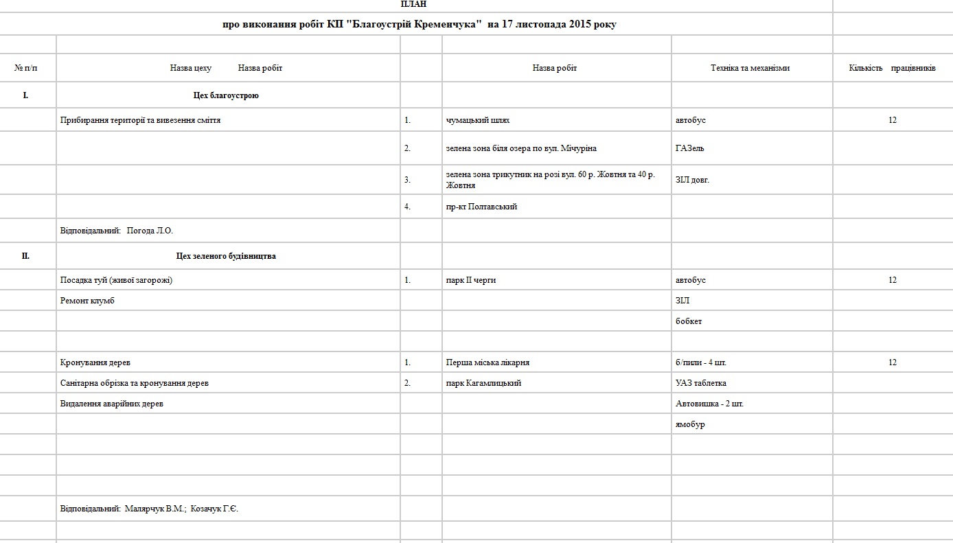 Де сьогодні, 17 листопада, працюють комунальні служби Кременчука