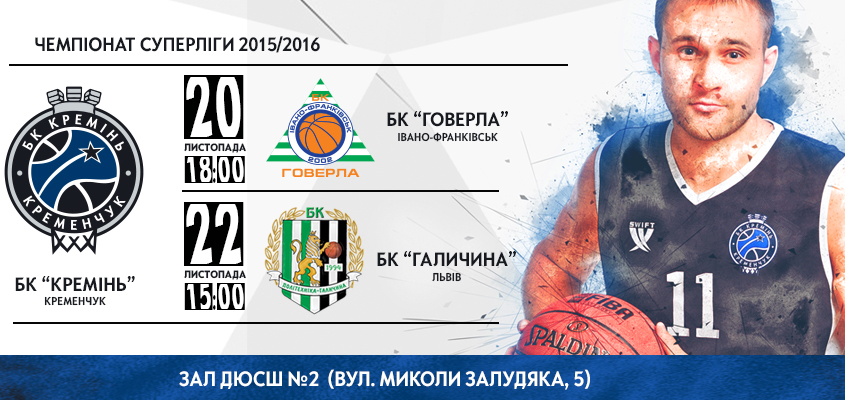 22 листопада о 15:00 «Кремінь» зіграє вдома з галицькими «левами». Початок баскетбольного матчу з Галичиною о 15:00 в ДЮСШ-2 (вул. Залудяка, 5).