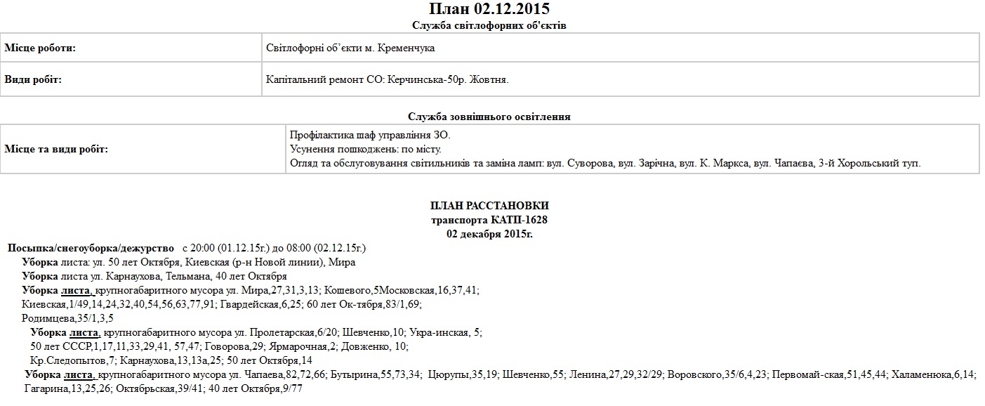 Де сьогодні, 2 грудня, працюють комунальні служби Кременчука
