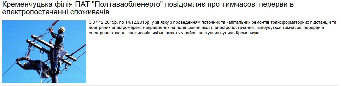 В связи с проведением текущих и капитальных ремонтных работ в электросетях города, некоторые его районы в течении всей следующей недели будут без света.