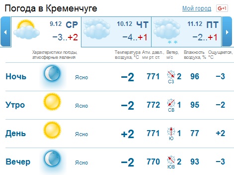 Більш точну для Кременчука інформацію про погодні умови на поточний тиждень дає Гісметео. За свідченнями цього джерела вдень з понеділка по п'ятницю в Кременчуці буде переважно ясно, включно до середи. Середня денна температура +5 градусів тепла, нічна від +5 до -2.