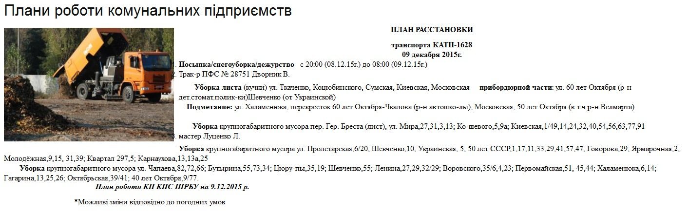 Де сьогодні, 9 грудня, працюють комунальні служби міста