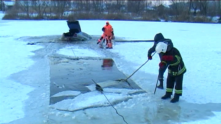 Полтавчанин пытался покататься по льду, но утопил свой автомобиль «Scoda Octavia». С помощью бензопилы и лебедки спасатели вырезали лёд и вытащили машину.