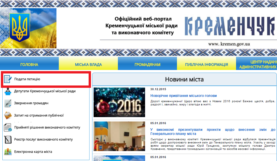 На офіційному сайті Кременчуцької міської ради з’явилася можливість направляти електронні петиції до міського голови та виконавчого комітету Кременчуцької міської ради. Про це повідомляє прес-служба мерії.