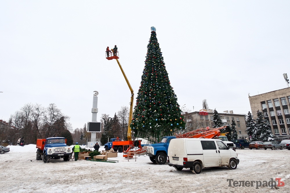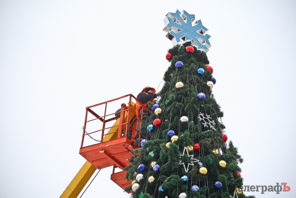 Цього року ялинка радувала кременчужан майже півтора місяці. Зазвичай новорічну красуню прибирають після Свята Водохреща, але цього року у зв’язку із сильними морозами та великим снігопадом розбирають пізніше.