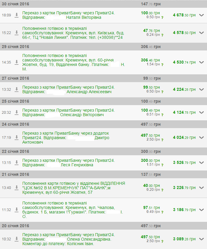 Протягом 22-31 січня кременчужани перерахували на картку 1451,71 грн. Загалом на рахунку - 4678,5 грн