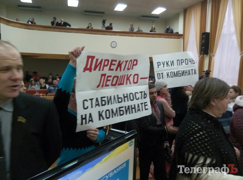 Сегодня, 2 февраля, на сессию горсовета пришли работники коммунального предприятия «Специализированный комбинат ритуальных услуг». Они держали плакаты «Не мешайте нам работать», «Руки прочь от комбината», «Директор Леошко – стабильность на комбинате».