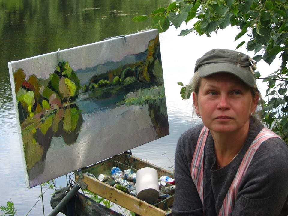 - Экспозиция содержит 20 картин. На многих из них изображена вода, как символ всего живого на Земле. Некоторые полотна изображают холмистость берегов Днепра. Я выросла в Комсомольске, потому с детства люблю хвойники и Днепр. Его масштаб потряс меня уже в сознательном возрасте. Это произошло во время студенческих каникул. Я вернулась домой из Полтавы, где тогда училась, и увидела насколько Днепр масштабнее тихой Ворсклы. Отсюда по сей день тянется любовь к Приднепровским склонам и берегам. Так что тема полотен возникала как бы сама собой. А участие в выставке мне предложила сама галерея. Для подготовки экспозиции у меня был год.