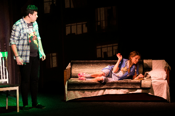 Спектакль разбит на несколько частей, никак не связанных друг с другом. Сначала зритель знакомится с молодыми людьми Лешей и Машей. Показано их знакомство и совместная жизнь до и после свадьбы. Здесь все понятно, бытовуха с грязными полами и истериками беременной жены зритель воспринял «на ура».