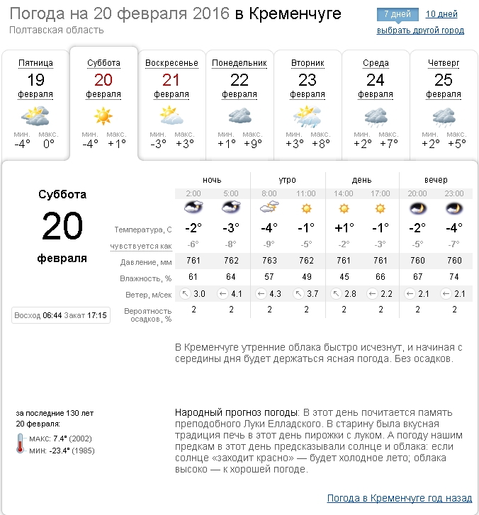 В Кременчуге на выходных 20-21 февраля немного похолодает. Об этом свидетельствуют прогнозы главных синоптических ресурсов Украины.