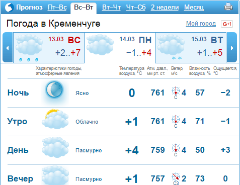 Погода от Гисметео не отличается от предыдущих ресурсов: температура от 0 до +4, пасмурно.